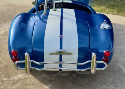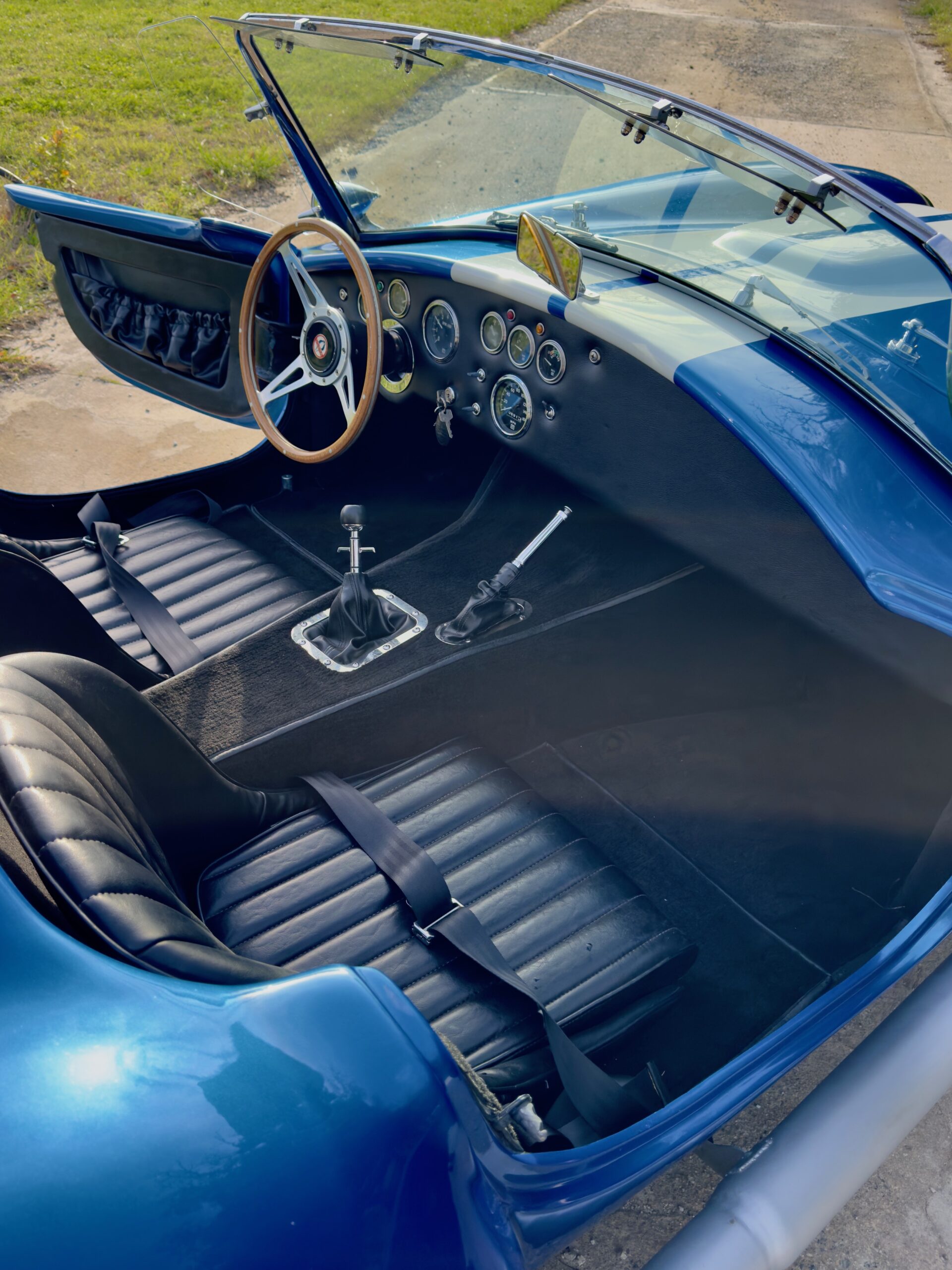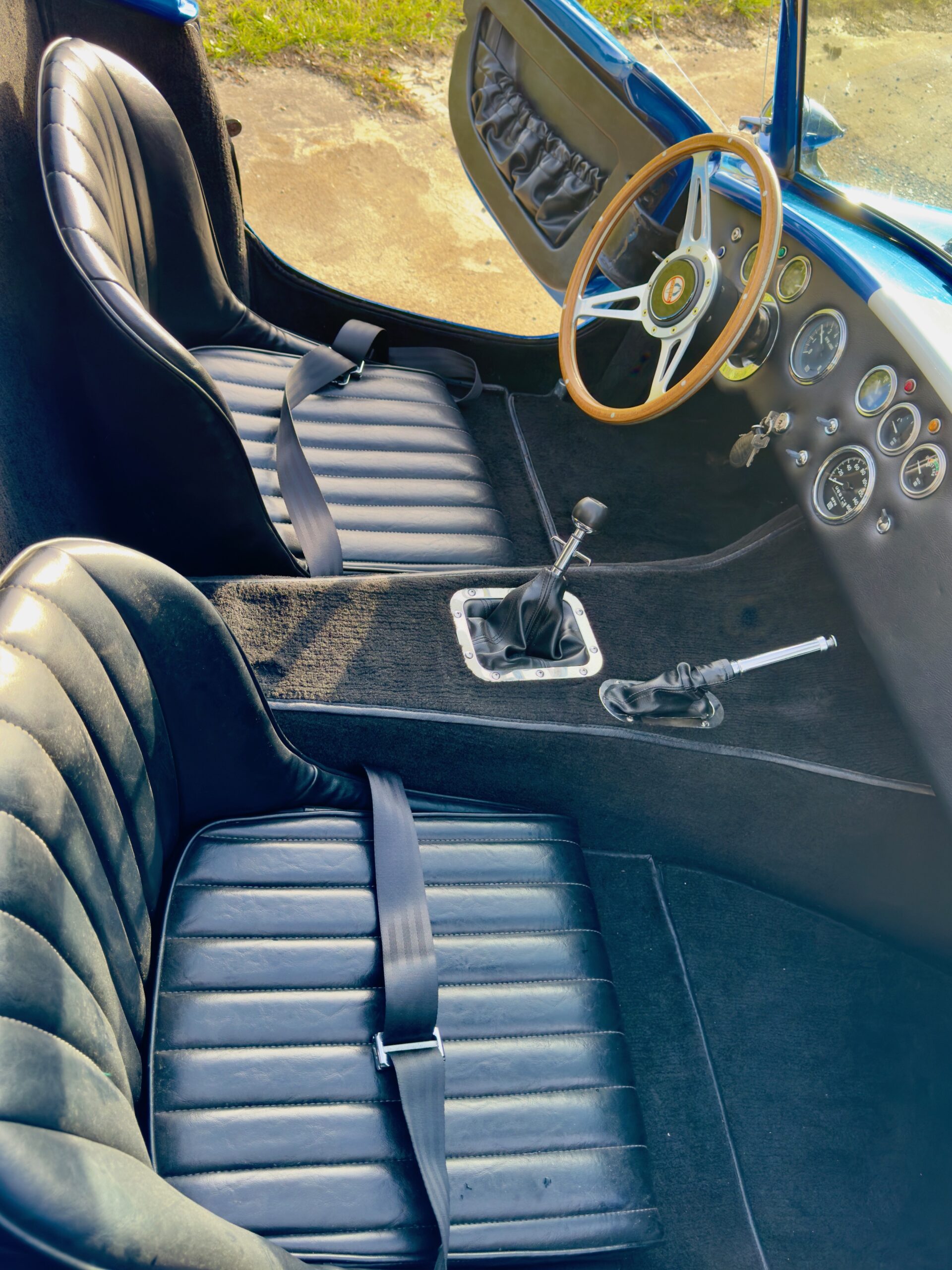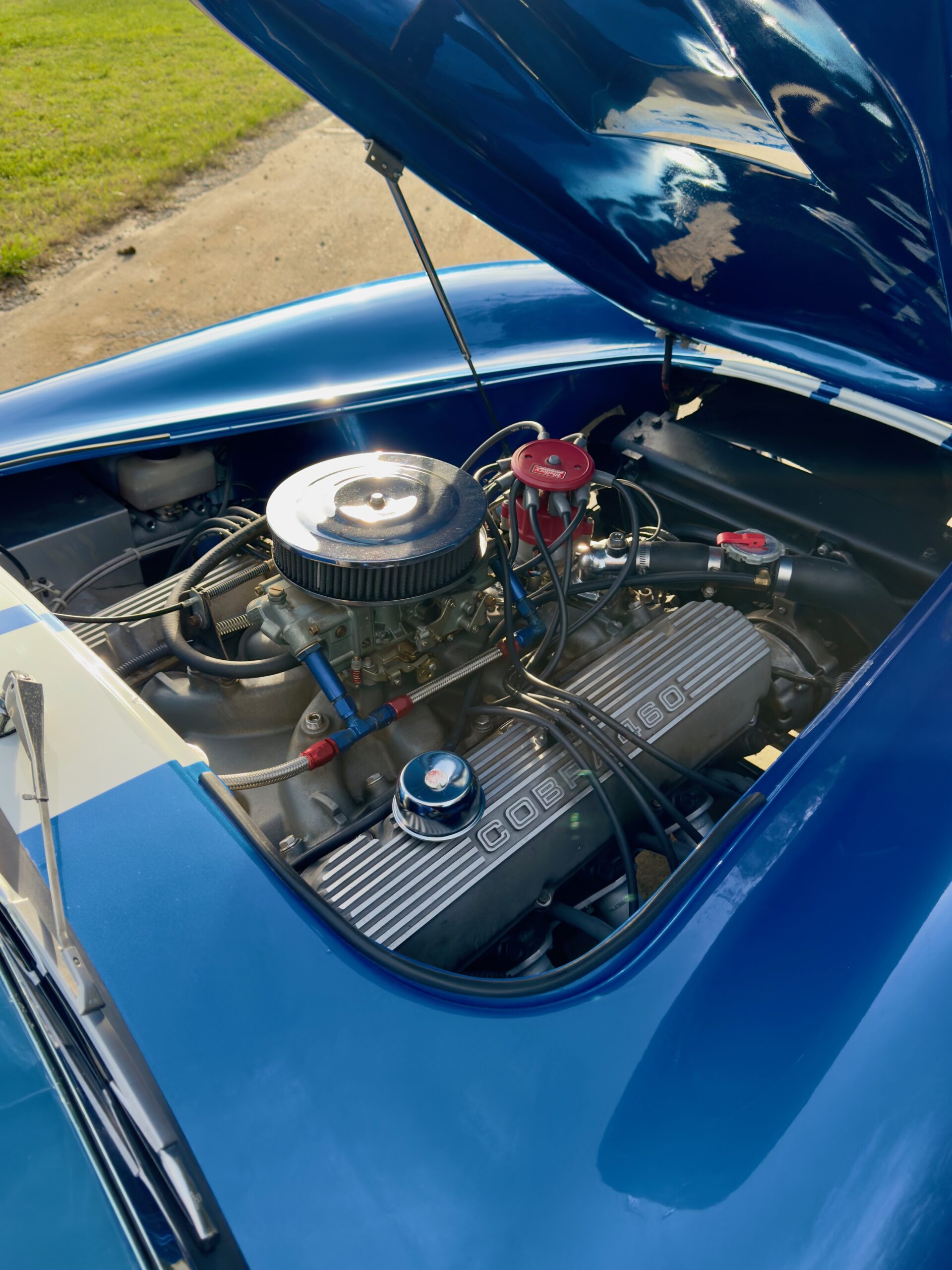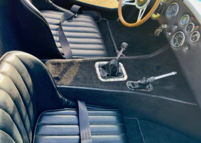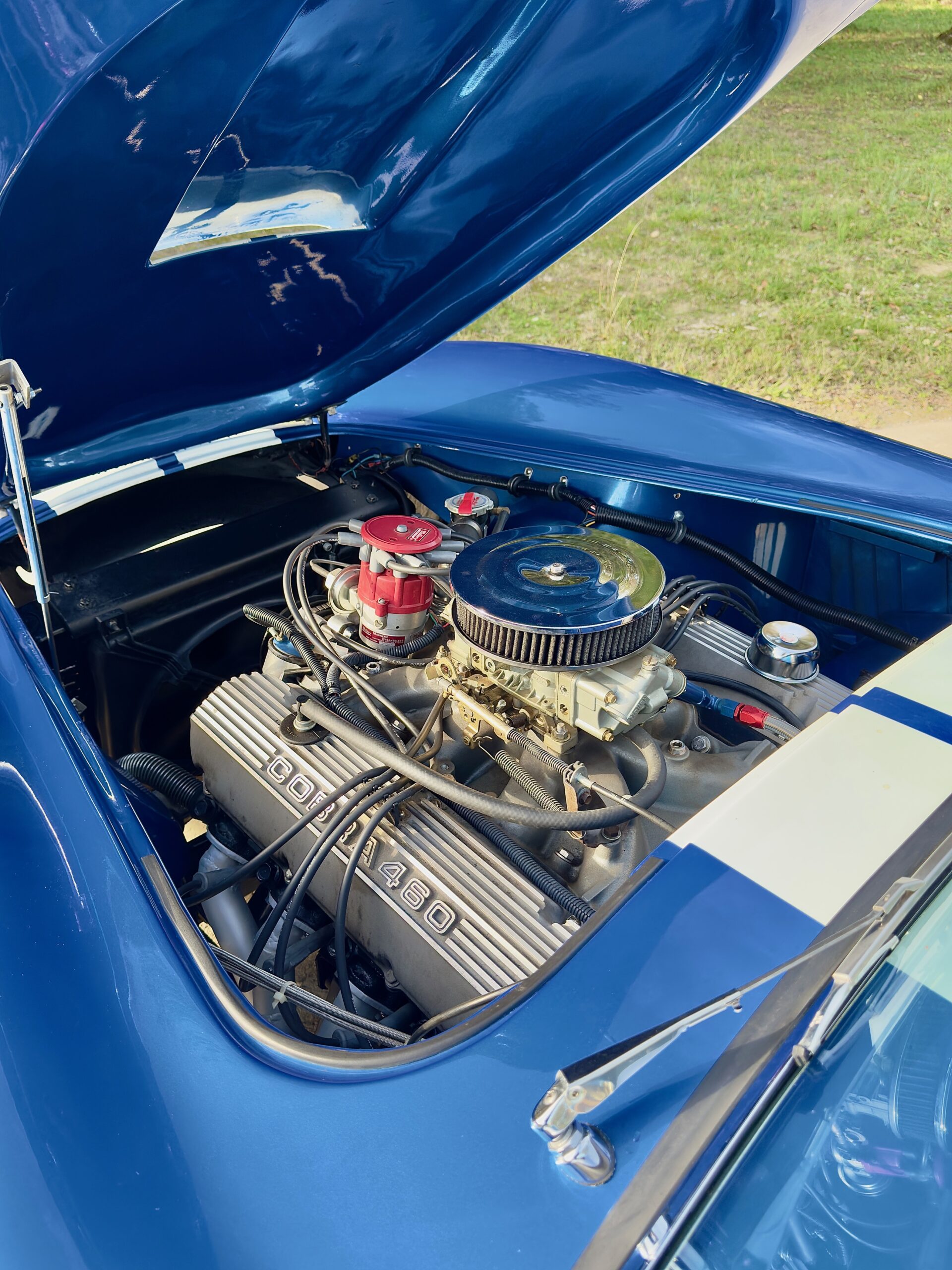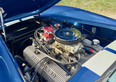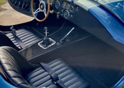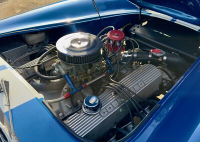 – Moteur Ford Big Block 460 – Carburateur Holley 750 cfm 4 corps – Allumage MSD (tête + bobine) – Boîte de vitesses Top Loader 4 rapports – Filtre à air et caches-culbuteurs Cobra 427